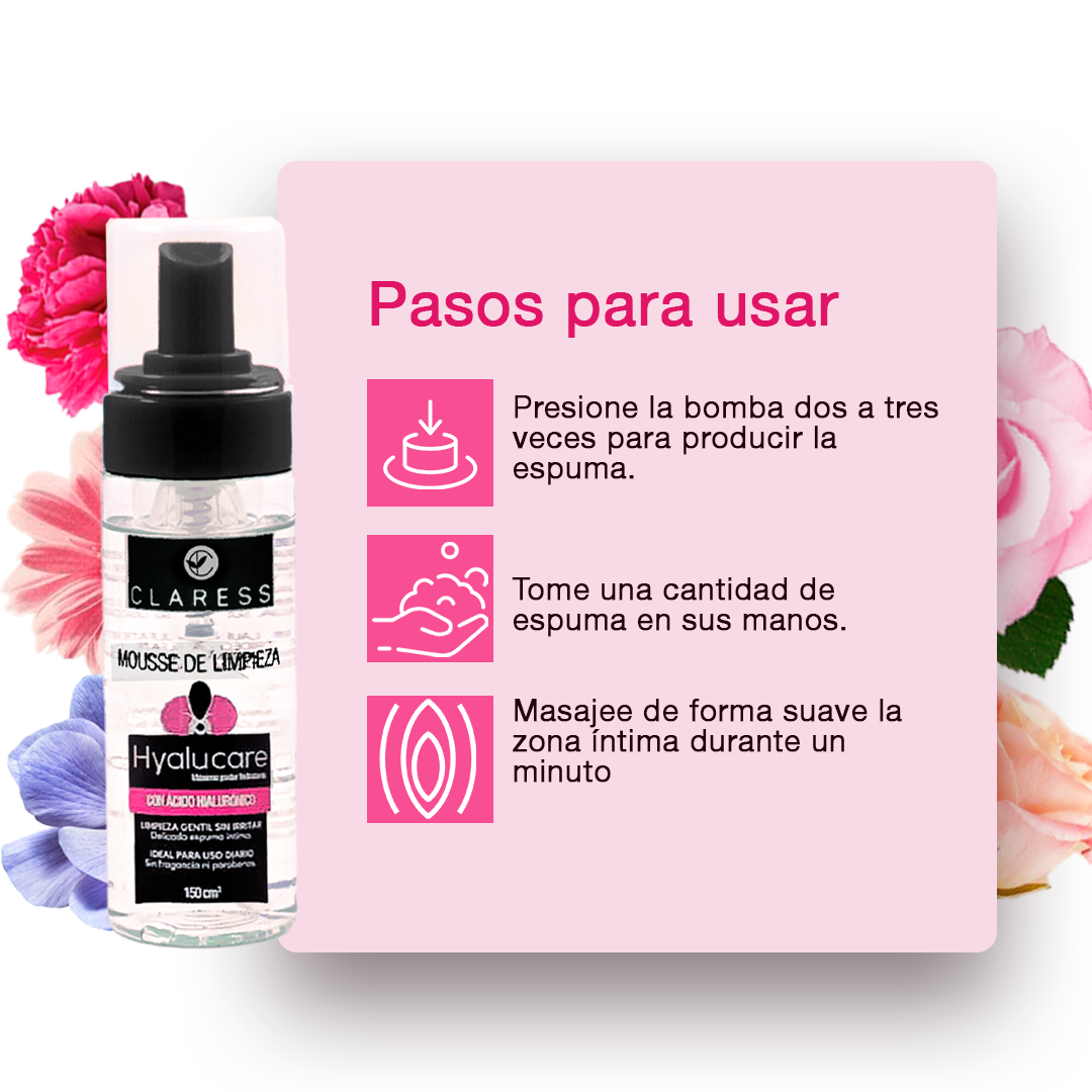 El primer limpiador íntimo en Venezuela formulado con ácido hialurónico para combatir la resequedad vaginal, en un delicado formato de espuma. Su fórmula suave, libre de fragancias y de agentes irritantes como el lauril sulfato de sodio, protege la zona íntima externa y respeta el pH natural, brindando frescura y confort todos los días.