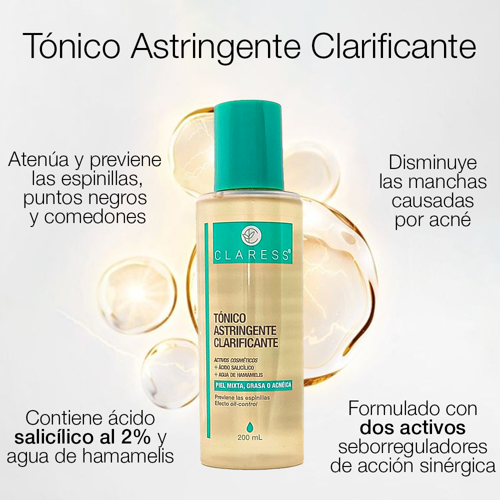- Continúa Tónico Astringente con ácido salicílico al 2% para exfoliar y evitar la oclusión de los poros.